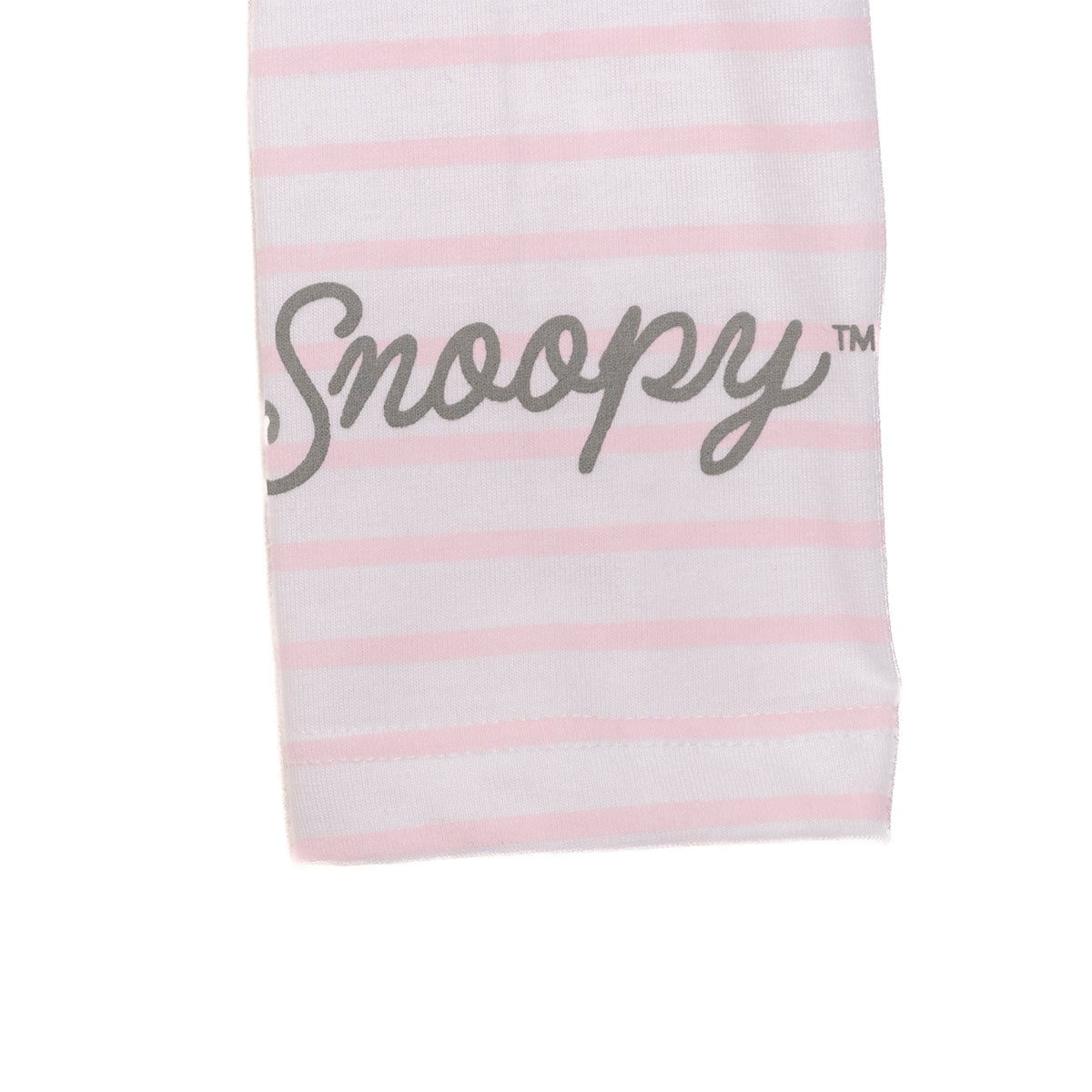 Playera blanca de manga larga con rayas rosa y estampado "Snoopy" en la manga