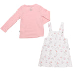 Conjunto encantador de dos piezas ideal para vestir a tu bebé niña con un look tierno, moderno y muy cómodo. Incluye un jumper blanco con tirantes y estampado completo de Miffy en tonos pastel, acompañado de una blusa rosa de manga larga con el nombre “Miffy” estampado en relieve tipo esponjoso sobre la manga. Perfecto para usar en climas frescos, salidas especiales o simplemente para verse adorable en casa.
