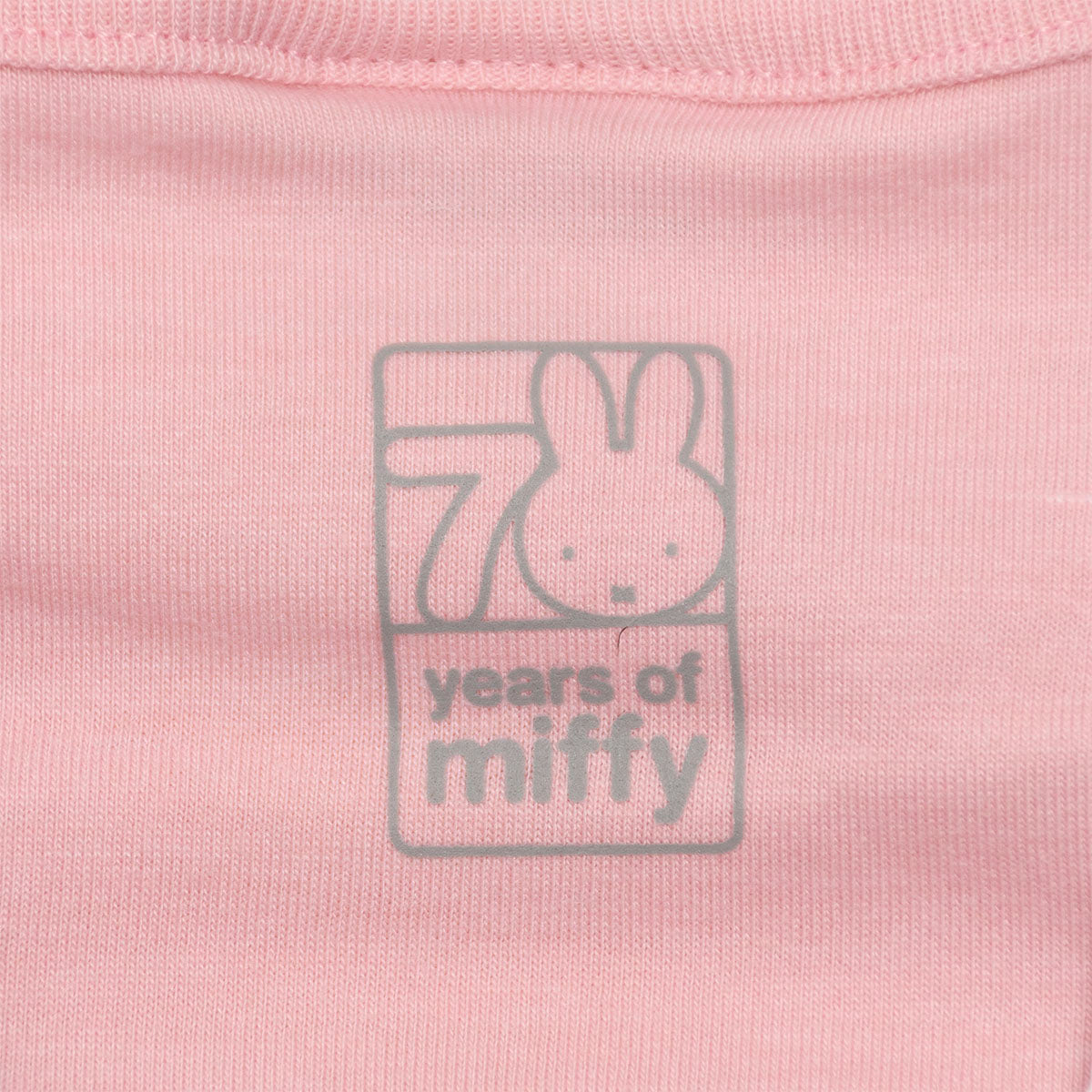 Blusa de manga larga en rosa claro con cuello redondo y letras esponjadas “Miffy” en la manga