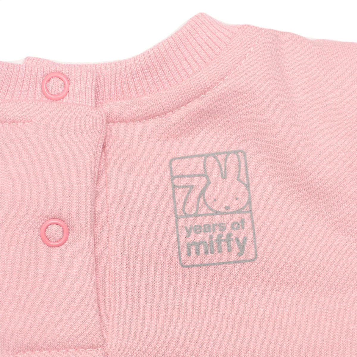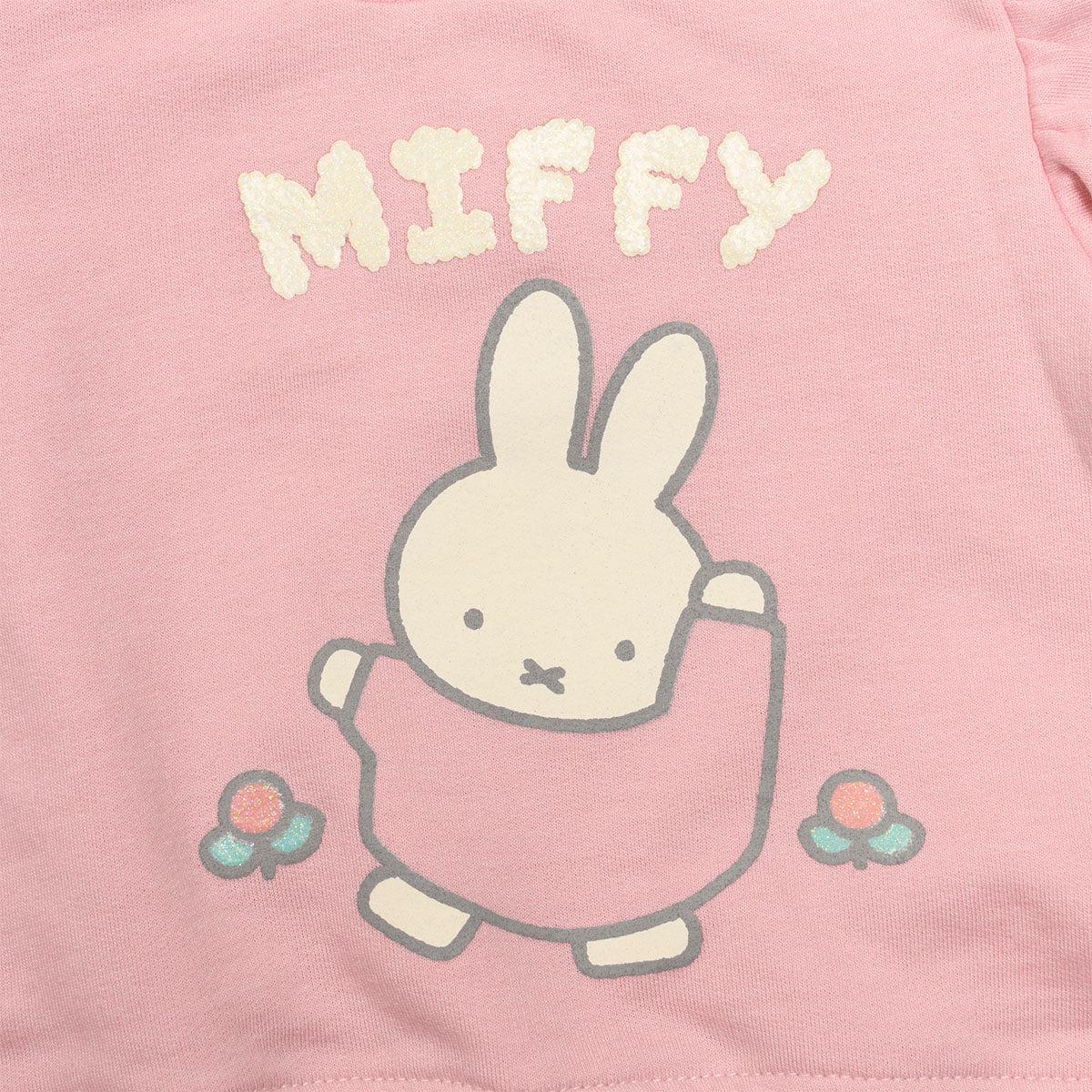 • Sudadera rosa con volantes en los hombros, cuello redondo y diseño frontal de Miffy con letras tipo esponjadas